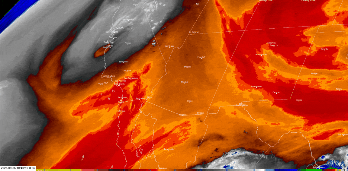 Fig. 1: GOES-19 Water Vapor satellite image between 3 AM MST Sep 25th and 8 PM MST Sep 27th, 2025