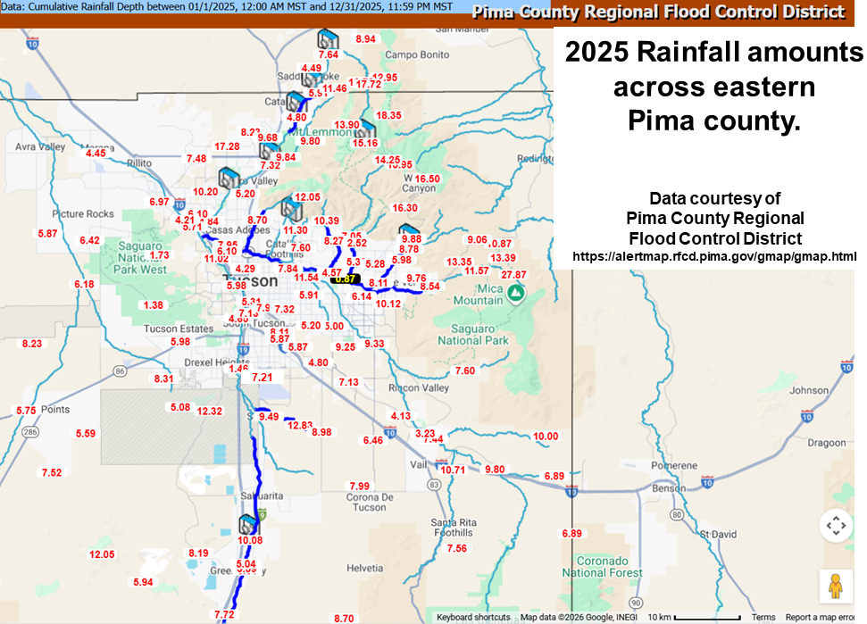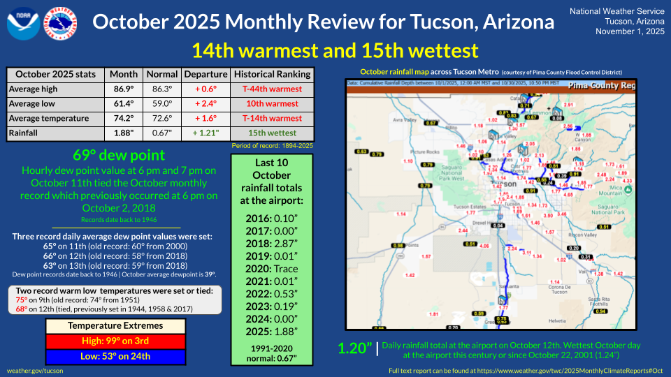 The remainder of the month saw high temperatures in the 90s to 102° with isolated showers and thunderstorms occurring on the 25th, 26th, 28th & 29th. The most noteworthy event was on the 25th with isolated heavy rain occurring in Oro Valley and Marana.