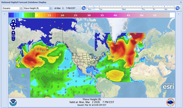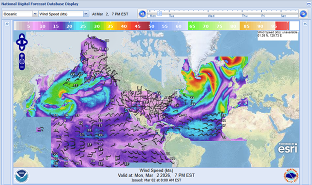 Mariners can access the gridded forecasts produced by OPC, the National Hurricane Center, local coastal Weather Forecast Offices including Alaska, and the Honolulu Forecast Office at https://digital.weather.gov/.
